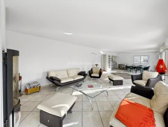 Dans un secteur très recherché pour son calme et sa proximité avec toutes les commodités, très belle maison récente au style unique avec de beaux volumes (335 m² utiles), comprenant : entrée, double séjour avec cheminée, cuisine équipée, 5 chambres dont une suite parentale et une de plain-pied, salle de bains avec douche et baignoire, salle d'eau, bureau/mezzanine, 2 WC séparés, sous-sol total - sur un magnifique terrain clos, entièrement arboré et paysager, de 1444 m², sans vis à vis et très bien exposé. Nombreuses prestations de standing, aucun travaux à réaliser.